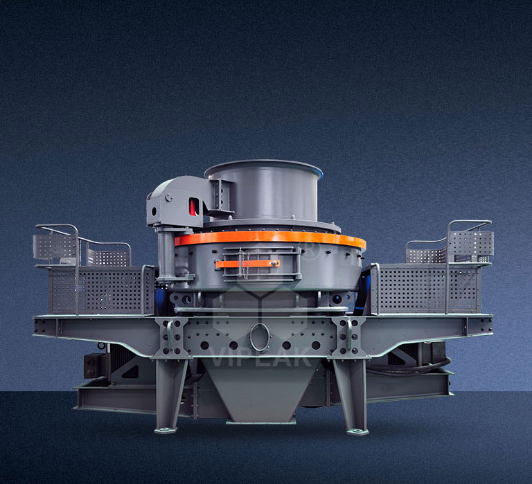 Центральная подача с кольцевой каскадной подачей: материал попадает в загрузочный желоб дробилки для песка, через кольцевое отверстие падает и разделяется разделительной пластиной на две части. Одна часть через распределительный диск входит в быстро вращающееся шкив, а другая падает по периметру распределительного диска. Материал, попавший в шкив, быстро разгоняется в нем, при этом его ускорение может достигать десятков раз ускорения свободного падения, затем с высокой скоростью выбрасывается из шкива. Сначала он сталкивается и дробит другую часть материала, свободно падающую по периметру распределителя, затем вместе они ударяют о вихревую подкладку в вихревой камере, отскакивают от нее, под наклоном вверх ударяют о верхнюю часть вихревой камеры, меняют направление движения, отклоняются вниз и снова сталкиваются с материалом, выбрасываемым из лопастных каналов, образуя непрерывный пелену материала. Таким образом, частица материала подвергается двум или более случайным ударам, трению и шлифованию в вихревой дробильной камере, и дробленный материал выходит через нижний выпускной отверстие.