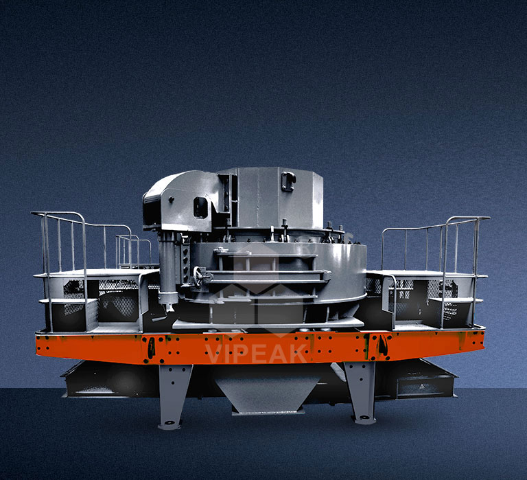 Полностью центральная подача: материал попадает в приемный желоб дробилки, через центральное питающее отверстие входит в быстро вращающееся вращательное колесо, где быстро ускоряется, причем его ускорение может достигать десятков раз ускорения свободного падения, затем с высокой скоростью выбрасывается из вращательного колеса. Сначала он сталкивается с другой частью материала, которая свободно падает после отскока, затем вместе с ней ударяется о материалное покрытие (камень бьет камень) или противотрубку (камень бьет железо), отскакивает под углом вверх, ударяя о верхнюю часть вихревой камеры, снова изменяет направление движения, отклоняется вниз и сталкивается с материалом, выбрасываемым из лопастных каналов, образуя непрерывный пелену материала. Таким образом, один кусок материала в вихревой дробительной камере подвергается двух или более случайным ударам, трению и шлифованию, а дробленный материал выводится через нижний выпускной отверстие.