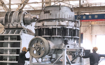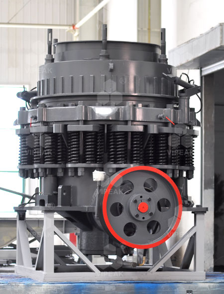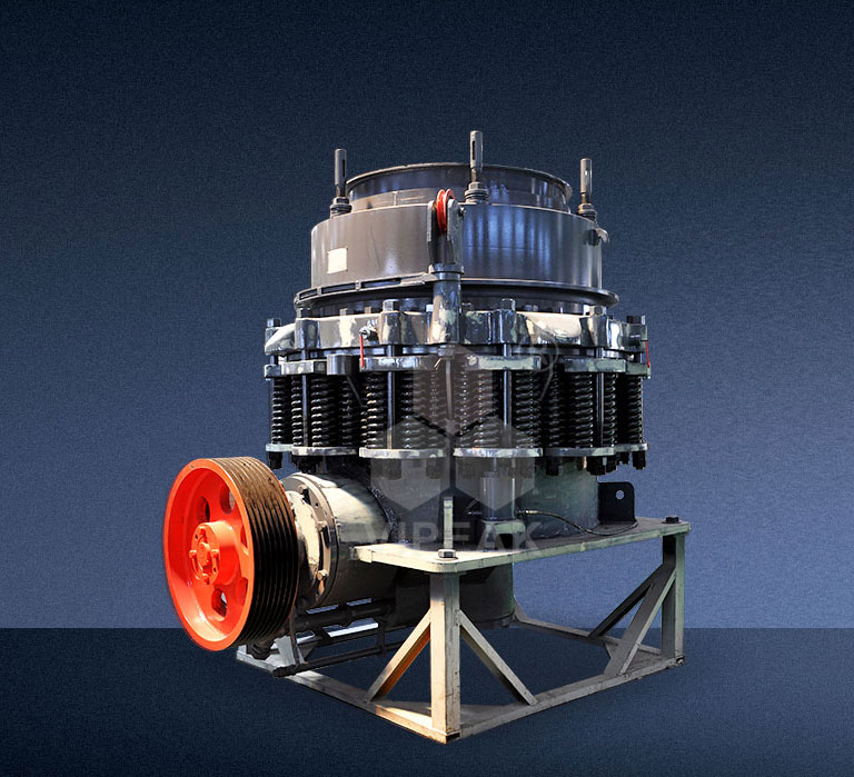 Конический дробилка CS в основном состоит из рамы, стационарного конуса, подвижного конуса, пружинного механизма, чашевидного опорного узла и передающего устройства; его вспомогательные части включают электрическую систему, систему смазки тонким маслом и гидравлическую систему очистки полости.